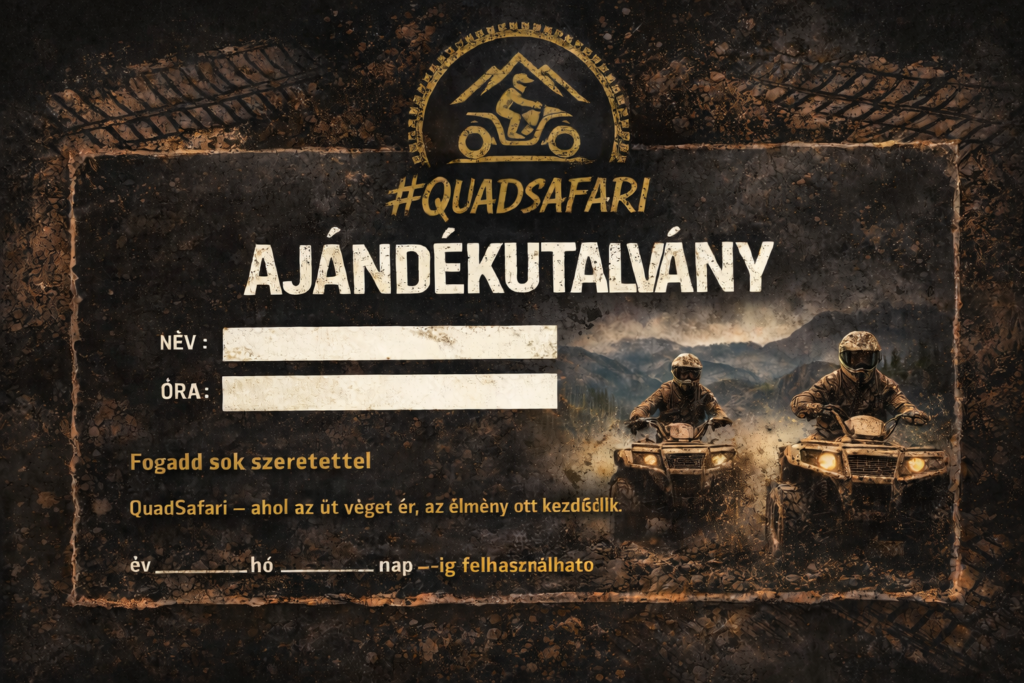 Szeretnél olyan ajándékot adni, ami nem porosodik a polcon, hanem valódi élményt nyújt? Egy quadtúra emlékezetes meglepetés bármilyen alkalomra – legyen szó ballagásról, diplomaosztóról, születésnapról, eljegyzésről, évfordulóról, karácsonyról vagy Valentin-napról.